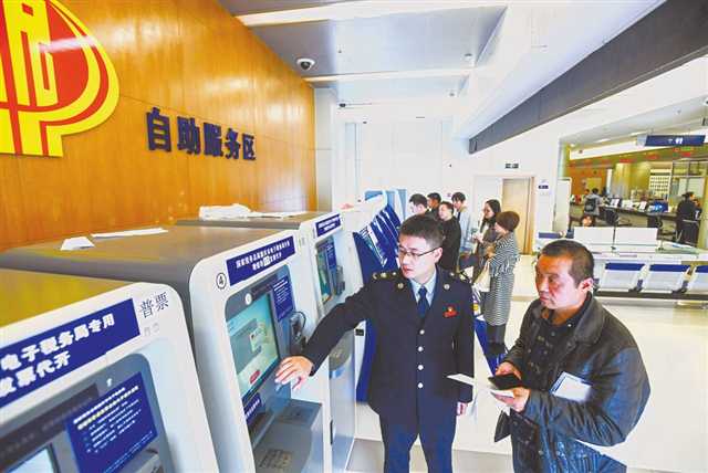 渝北区行政服务中心工作人员为市民演示操作自助系统 摄/李显彦