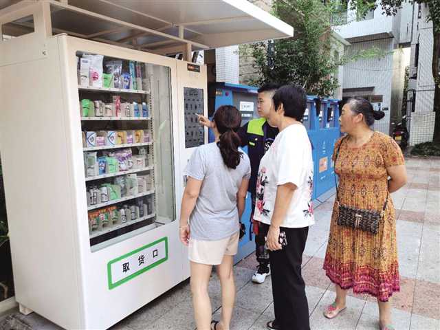 渝北区龙山街道春风城市心筑小区的龚丽华家中有一个专属的二维码,每次扔垃圾,她都会将二维码贴在分类的垃圾包上,然后将垃圾准确地放进分类的垃圾桶内,获得积分。当积到一定的分数后,到设置在小区内的礼品兑换机上兑换洗衣粉等生活用品。
