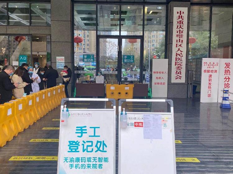 据了解,目前璧山区所有二级以上医疗卫生机构均设有“无健康码”专用通道,配备工作人员帮助老年人查询健康码,协助没有手机或无法提供健康码的老年人,通过手工填写完成流行病学史调查,凭有效身份证件或纸质证明等替代查验,缩短老年人等候时间。