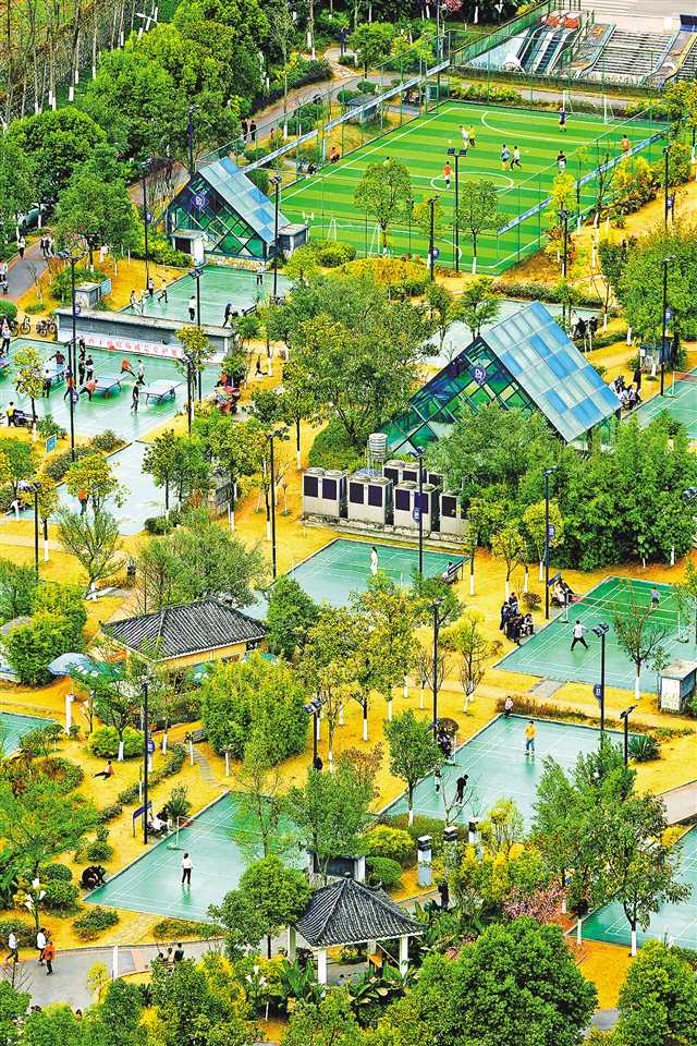 市民在公园里打羽毛球、打乒乓球、踢足球。通讯员 王泸州 摄/视觉重庆