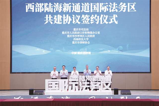 6月26日,沙坪坝区人民政府与重庆市司法局、重庆市人民政府口岸和物流办公室、西南政法大学、重庆市律师协会五方签订西部陆海新通道国际法务区共建框架协议,联合共建西部陆海新通道国际法务区,打造我市首个国际法律服务区。