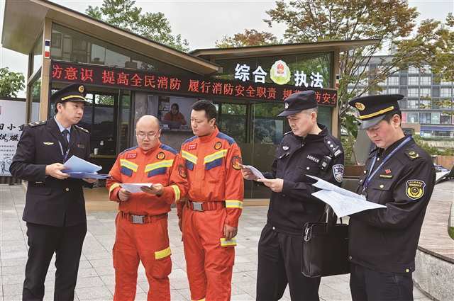 沙坪坝区司法局协同区消防救援支队、磁器口派出所、磁器口市场监管所等执法机构开展综合执法(沙坪坝区司法局供图)