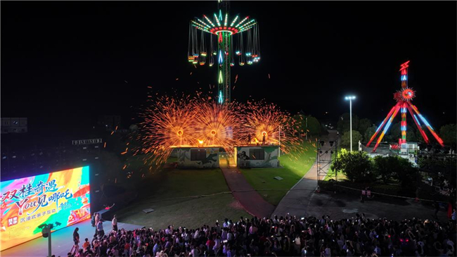 游客朱丽丽专门从外地带着孩子来参加亲子活动,“带孩子游玩的同时,还能欣赏非遗打铁花表演,梁平的文旅融合做得特别棒!”