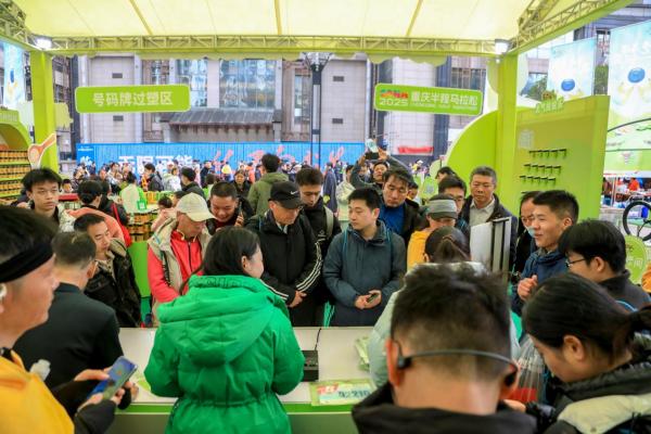 在现场,跨境优品展销专区内,东南亚特色零食、东盟调味品的香气浓郁;“重庆造”工业品专区前,汽摩配件等吸引大批观众驻足,几位年轻跑友饶有兴致地体验着时髦摩托车。区县特色品牌专区更是热闹非凡,巴南土特产、小面底料等产品琳琅满目,“免费试吃”“折扣有礼”的促销声此起彼伏。