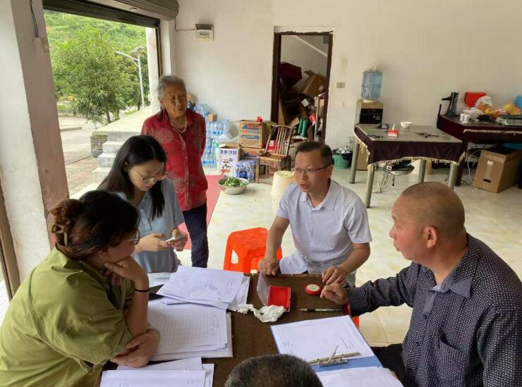 相关工作人员来到忠县石子乡杨兴村检查清理六大类房屋测绘的情况。受访者供图