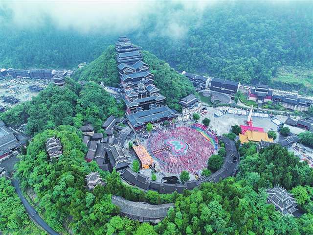 精品景区的提质升级,也让彭水旅游吸引力持续增强。2025年9月,第三届中国非物质文化遗产保护年会开幕式发布《非遗与旅游融合发展蓝皮书2025》优秀案例名单,重庆市彭水县蚩尤九黎城景区成功入选。景区通过丰富多元的非遗互动体验项目,全面满足游客看好、吃好、听好、玩好、用好的“五好”体验,让非遗不再是冰冷的符号,极大提升了游客满意度和重游率,成为重庆乃至全国非遗与旅游融合发展的典范。