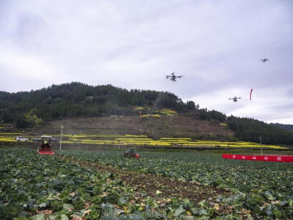 农业机械作业演示及无人机飞防、吊运演示。奉节县农业农村委员会供图