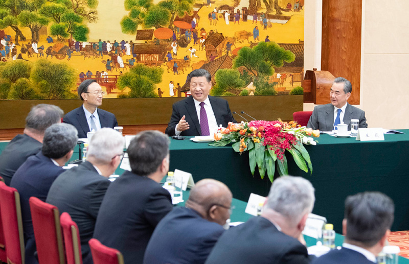12月3日,国家主席习近平在北京人民大会堂会见出席“2019从都国际论坛”外方嘉宾。新华社记者 李涛 摄