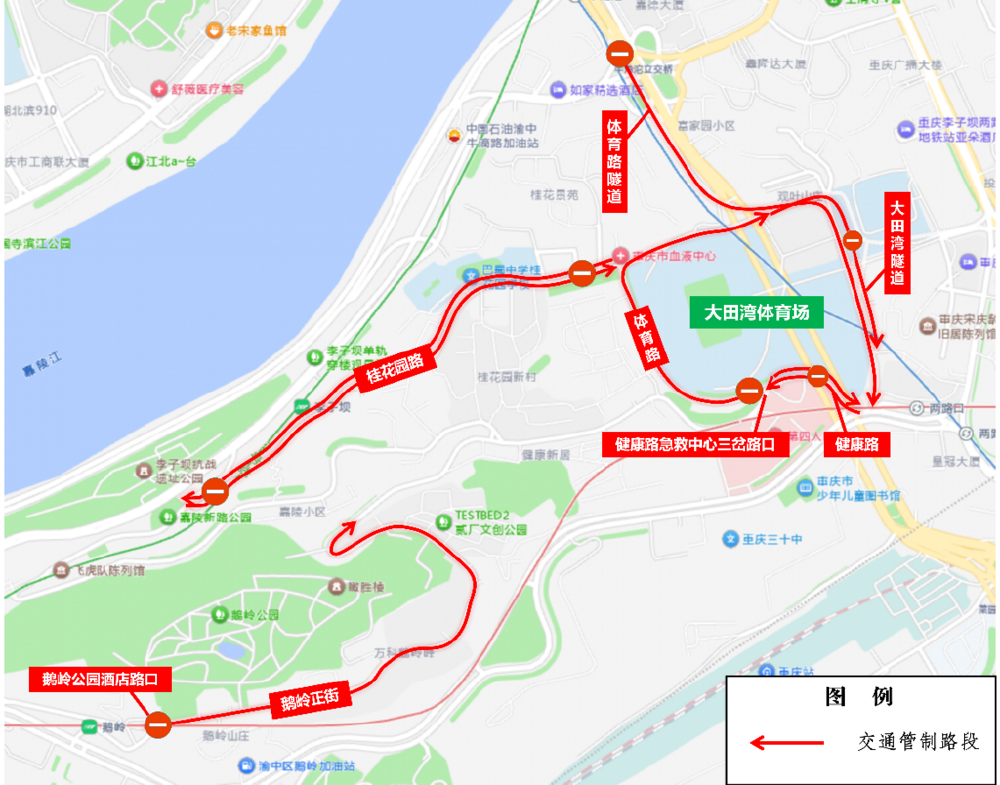 9月10日,记者从渝中区公安分局获悉,为维护开幕战期间体育场周边道路交通安全、有序,确保活动顺利进行,届时将对体育场周边部分区域和道路实施交通管制。