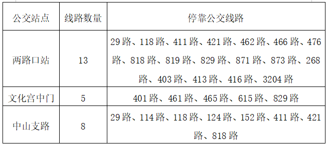 1、可乘以下公交线路至两路口站、文化宫中门站、中山支路站: