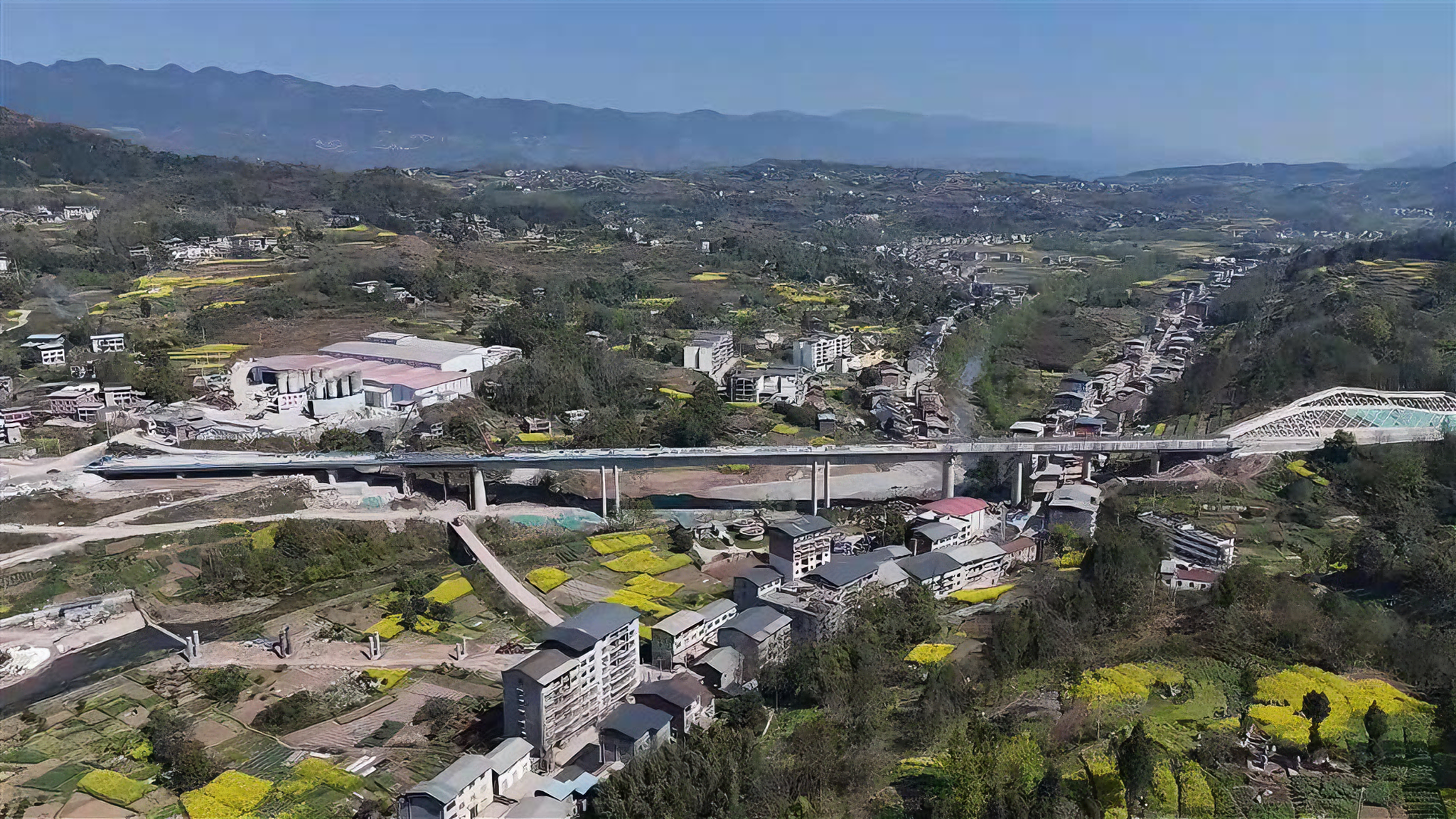 岳溪站特大桥。岳溪站特大桥位于开州区岳溪镇,全长527.1米,是成达万高铁项目关键控制性工程之一,也是连接岳溪站的重要枢纽工程。大桥由简支梁、连续梁、双线变四线道岔连续梁组成,其中2至3号简支梁横跨G243国道,施工精度及安全管控要求极高。