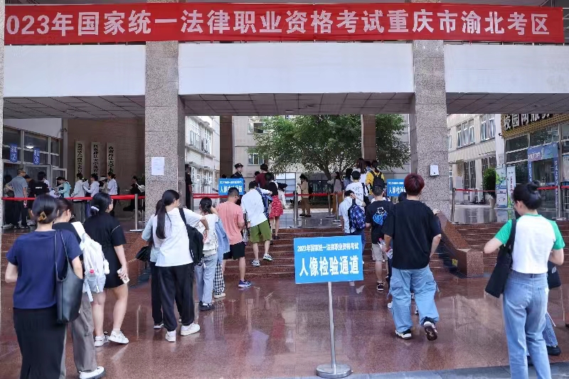2023法考客观题9月16日开考,考生正通过“人脸识别”考务安全系统,有序地排队“刷脸”进入考场。重庆市司法局供图