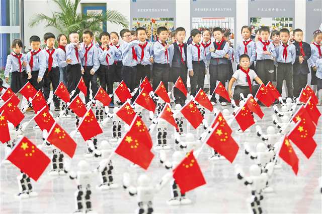 两江新区博雅小学校园内,近百个机器人列队表演歌舞。(资料图片)记者 罗斌 摄/视觉重庆