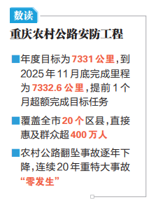 截至2025年11月底,我市累计完成农村公路安防工程7332.6公里,提前一个月超额完成7331公里的年度目标任务。这一道道安全护栏,让群众家门口的道路化作致富路、幸福路、连心路,为乡村振兴注入稳稳的安全感。