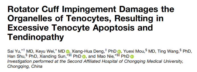 为此,团队首次系统揭示了肩峰撞击综合征通过损伤腱细胞内线粒体和内质网,导致细胞过度凋亡,从而驱动肩袖腱病发生的早期关键机制。