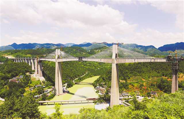 6月18日,国内第一高跨铁路桥阿蓬江大桥顺利合龙。第一高跨即桥墩高达123.5米、主跨达240米,如此高桥墩长跨度为国内铁路罕见。阿蓬江大桥合龙,标志着黔(江)张(家界)常(德)铁路站前工作全部完成,为全线按时通线赢得了时间。