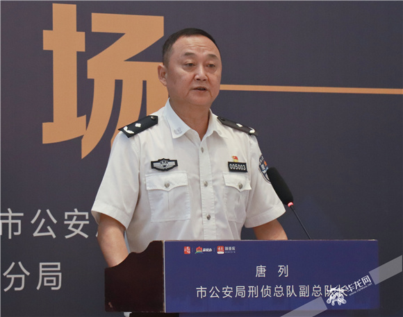 市公安局刑事侦查总队副总队长唐列作主题分享。 华龙网-新重庆客户端 葛彧 摄