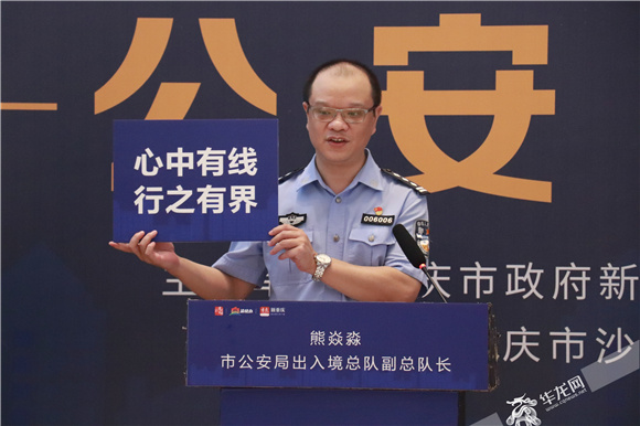 重庆市公安局出入境管理总队副总队长熊焱淼作主题分享。 华龙网-新重庆客户端 葛彧 摄