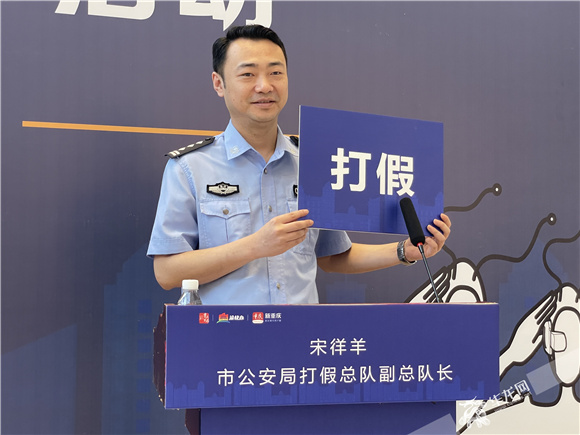 重庆市公安局打假总队副总队长宋徉羊作主题分享。 华龙网-新重庆客户端 葛彧 摄