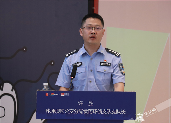 沙坪坝区公安分局食药环侦支队支队长许胜回答群众提问。 华龙网-新重庆客户端 葛彧 摄
