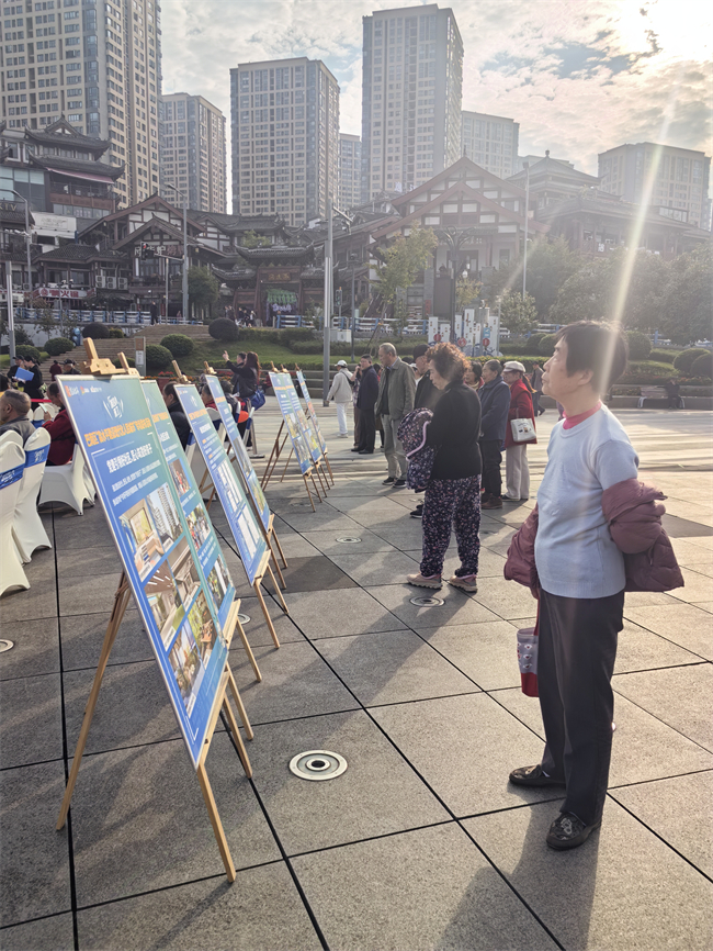 群众观看展板资料。第1眼TV-华龙网记者 殷睿 摄