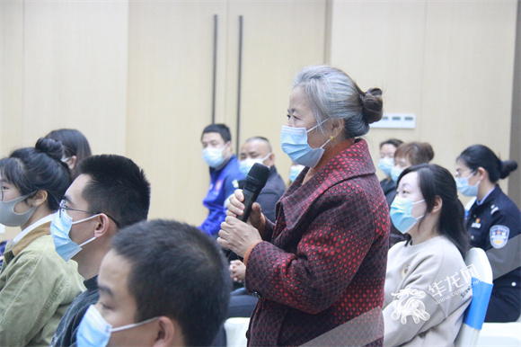 万友社区群众向瑞群现场提问。华龙网-新重庆客户端记者 张雪莹 摄