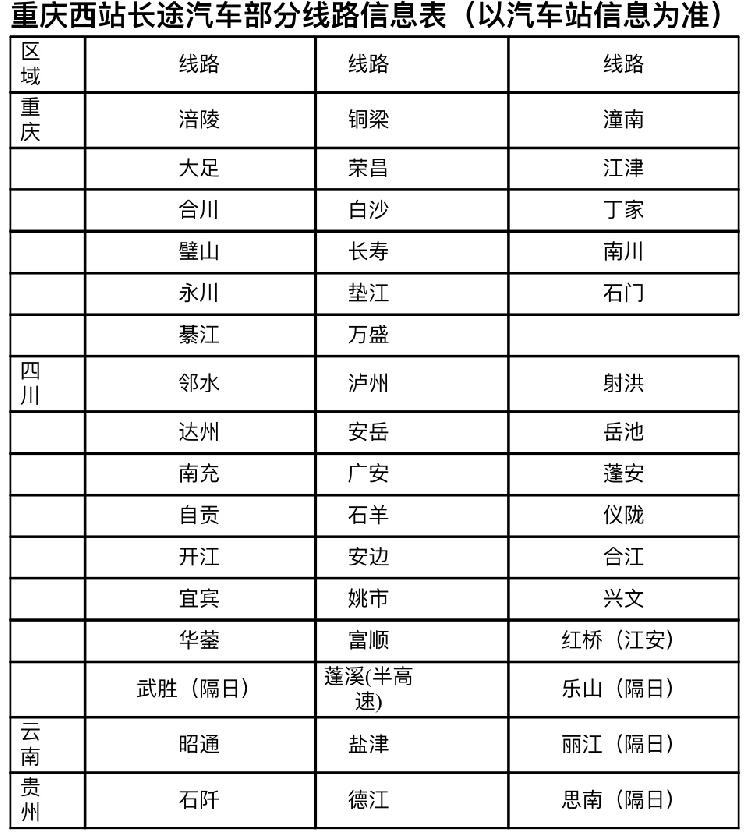 需要提醒的是:高峰期驾车到重庆西站,可把车辆停至南侧临时停车、北侧临时停车场、铁路公共停车场。驾车尽量“快进快出”,省时省车费。(南北落客平台即停即走区限时5分钟,停车场收费70元/天)