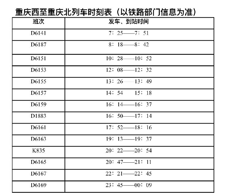公交化列车:如果到重庆北及周边区域,公交化列车是相对快捷的选择。