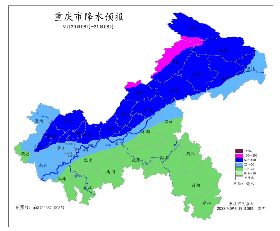 昨日,重庆开州、城口、巫溪出现暴雨到大暴雨。9月19日,重庆市气象台消息,预计19日白天,降雨仍集中在重庆东北部地区,开州、城口、巫溪局地暴雨;19日夜间至21日雨带南移影响全市,长江沿线以北部分地区暴雨,局地大暴雨。