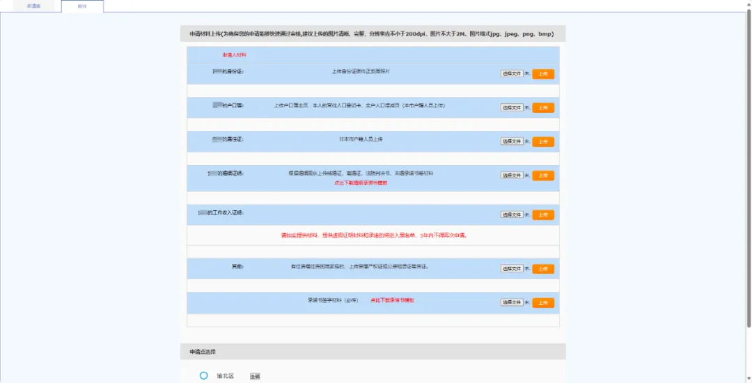 注意:上传的材料图片应清晰、完整,分辨率应不小于200dpi,图片不大于2M,图片格式为jpg、jpeg、png、bmp。