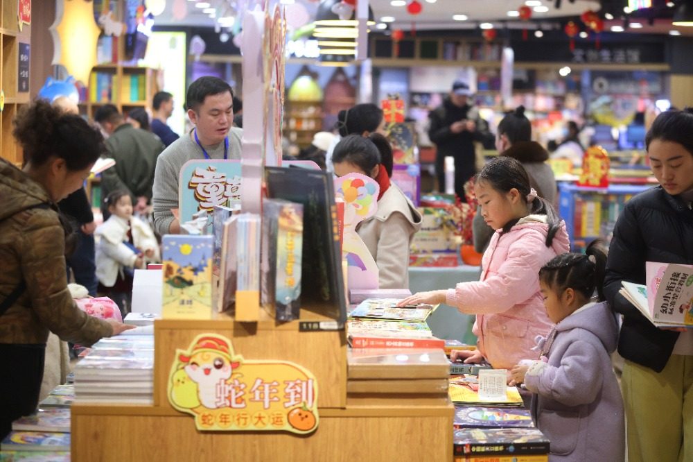 2025年1月21日,学生和家长在解放碑重庆书城挑选图书,乐享美好读书时光。特约摄影 钟志兵