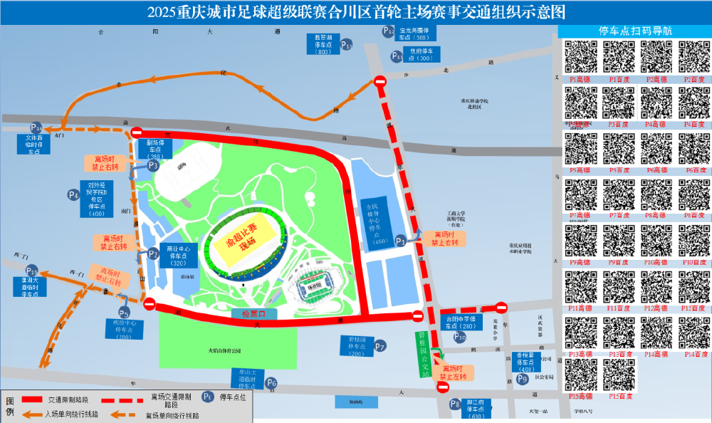 重庆市合川区公安局,关于2025年重庆城市足球超级联赛合川区首轮主场赛事期间道路交通限制措施的通告,2025年重庆城市足球超级联赛合川区首轮主场赛事,将于10月18日在合川体育中心体育场举行,为确保活动顺利进行,根据《中华人民共和国道路交通安全法》等相关法律规定,公安交管部门将对部分道路采取交通限制措施。现将有关事宜通告如下: