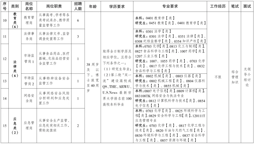 1.笔试科目。《综合管理知识》(分值100分),包括时事政治、国情市情、法律法规、经济、管理和写作能力等。笔试暂定于2026年1月10日(星期六)9:00—12:00,具体考试时间及地点详见准考证。