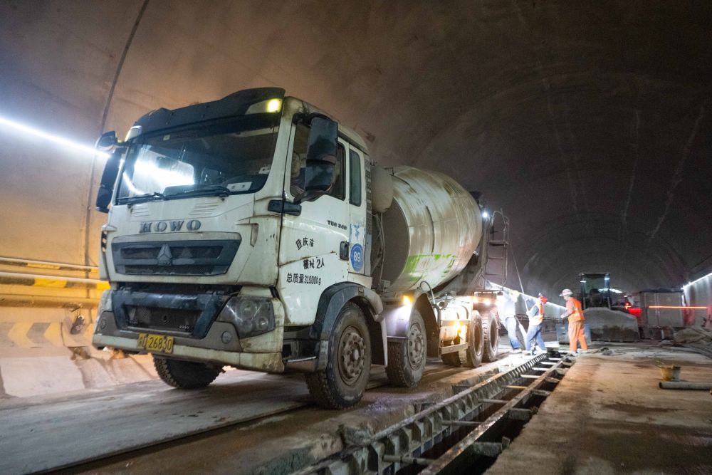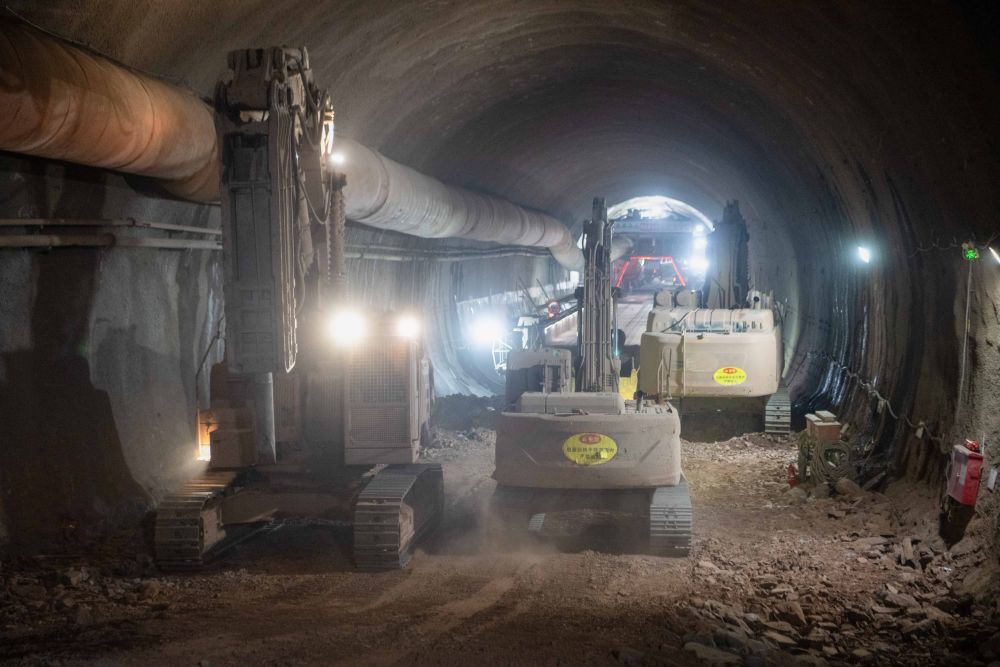 1月23日,工人驾驶大型机械在成渝中线高铁人和隧道内施工。