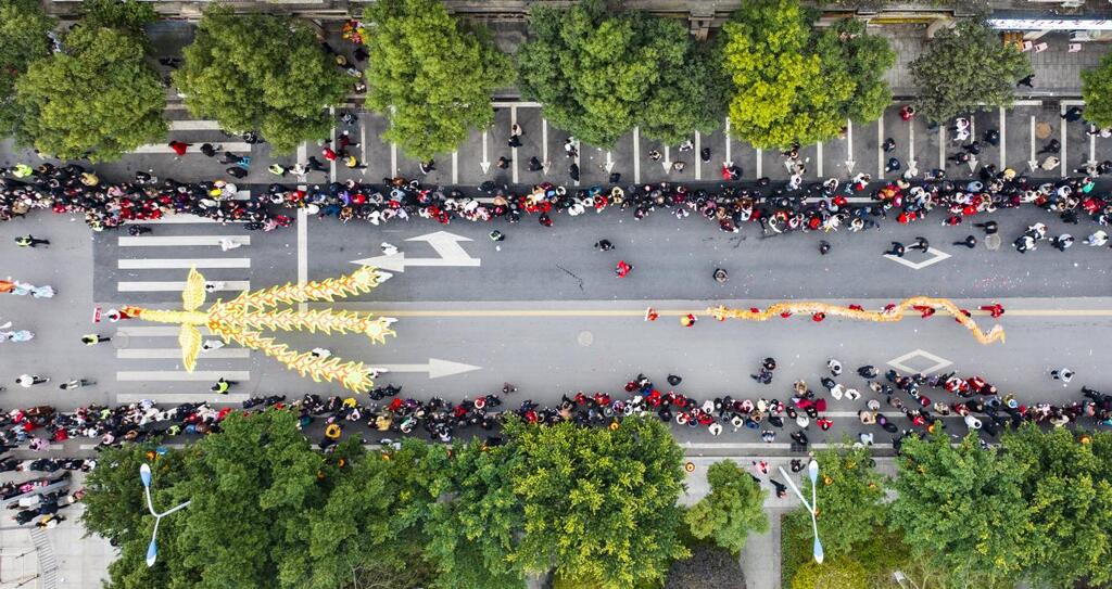 铁花与龙影交织间,千架无人机破空而起,为白沙夜空勾勒出绚丽的轮廓,与地面的火树银花交相辉映,带来传统与现代融合的视觉震撼。