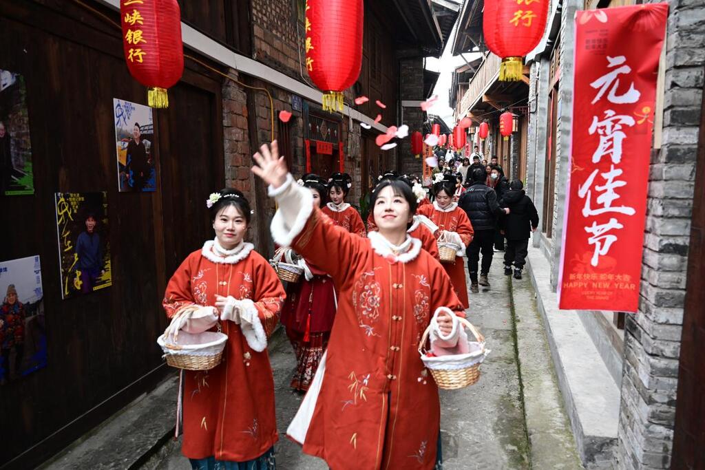 猜灯谜、祈福树、许愿墙、“我在白沙”网红打卡点等互动场景遍布街区,川剧表演、流水寺施汤圆等活动轮番上演,为游客营造沉浸式的节日体验。