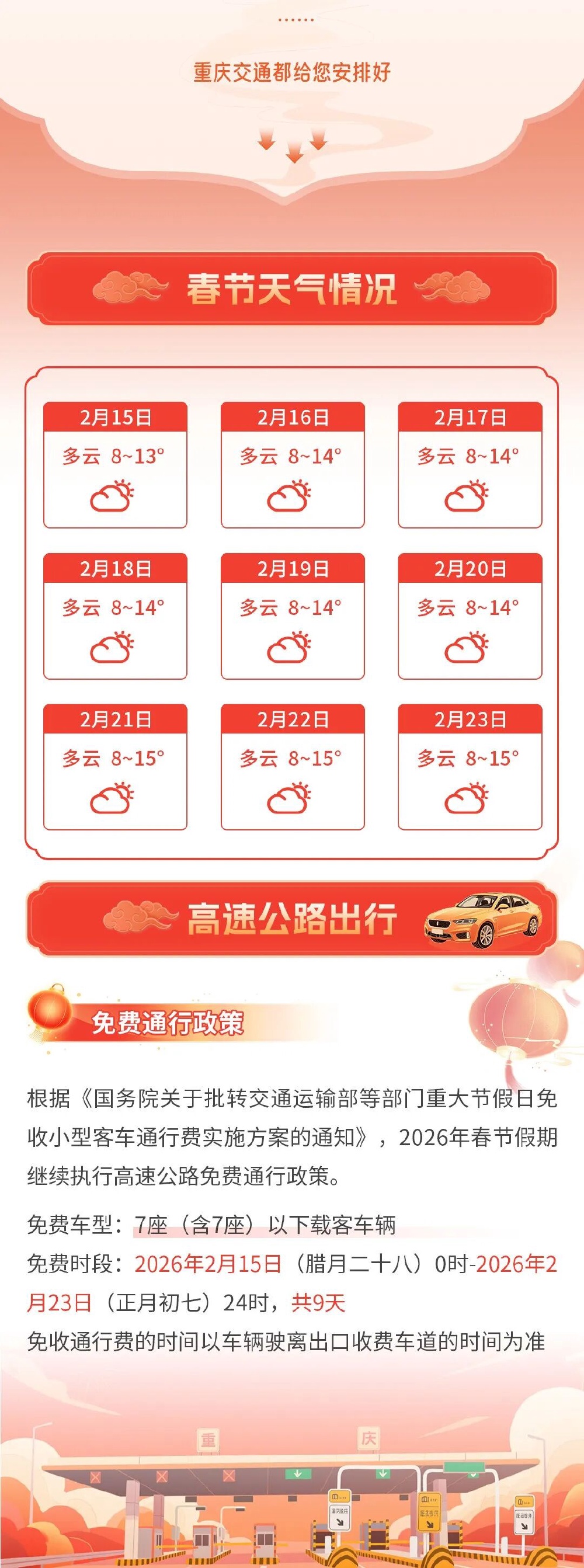 重庆交通部门为您整理了春节出行服务指南,赶紧收藏转发