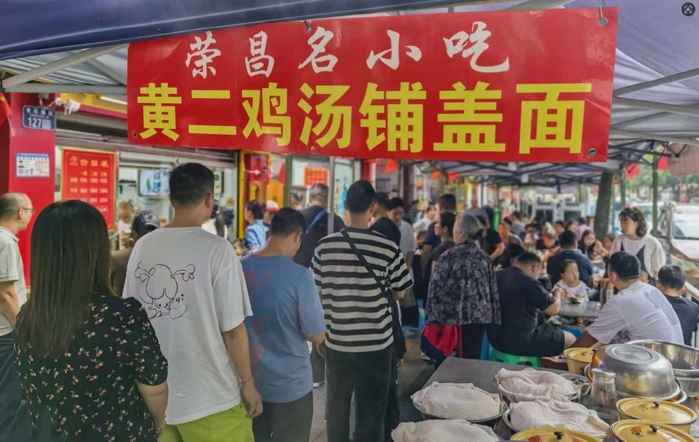 游客排队体验荣昌美食铺盖面。通讯员 张春连 摄
