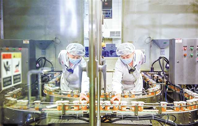 天友乳业生产车间,全自动利乐冠灌装机前,工作人员在查看产品品质。(资料图片)记者 万难 摄\视觉重庆