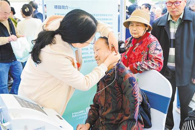 首场重庆健康集市活动中,工作人员为市民提供健康服务。(主办方供图)