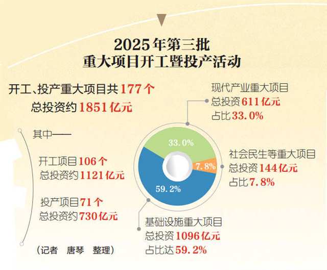 活动当天,全市开工、投产的基础设施重大项目总投资1096亿元、占比达59.2%。