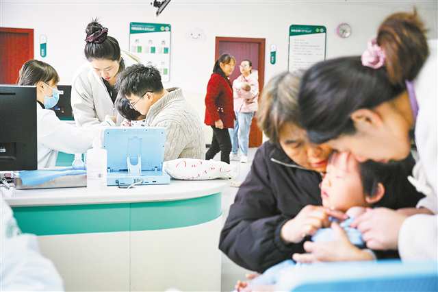11月28日,两江新区仙桃卫生服务中心,市民带孩子前来接种流感疫苗。当前,流感活动进入较快上升期,不少市民前往医疗机构接种疫苗。专家表示,预防流感可采取“疫苗+卫生习惯”双防线策略。流感病毒活动时间持续非常长,流行过程中会出现多个波峰,在整个流感流行季之内接种流感疫苗都是有益的。