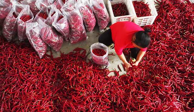 火锅产业的发展带动了产业链上的农民增收。图为黔江区黑溪镇辣椒丰收。特约摄影 杨敏/视觉重庆