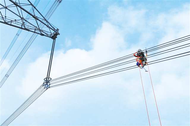 作为西南地区首个特高压交流工程,川渝1000千伏特高压交流工程于去年12月27日建成投运。此次作业是重庆首次1000千伏特高压同塔双回线路智能化等电位带电作业,充分检验了无人机、电动升降装置等智能化工器具在山地超特高压输电线路运检中的应用成效,为迎峰度冬电力保供筑牢基础。
