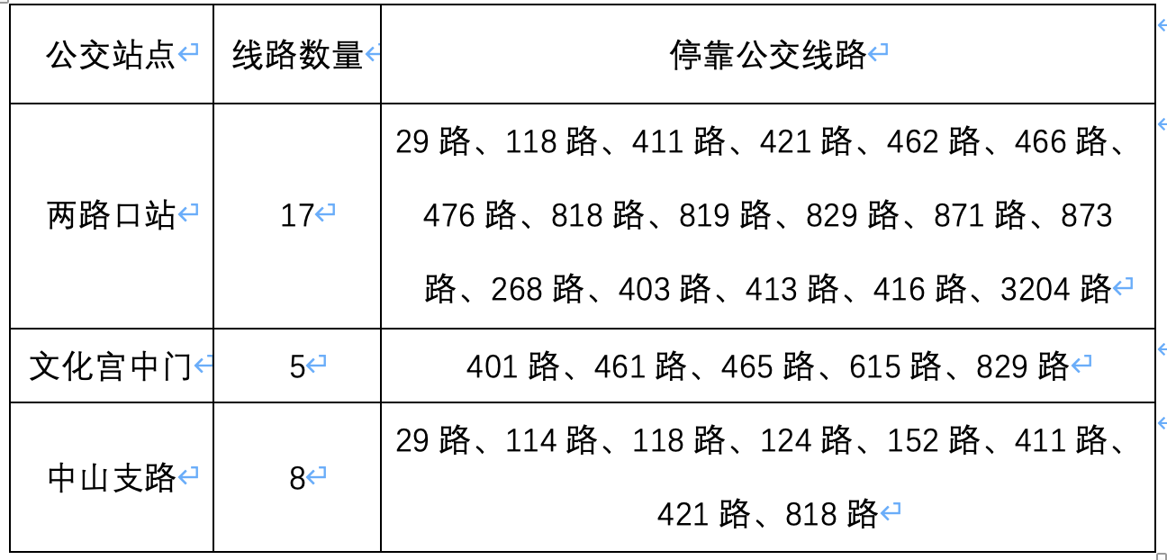 1、可乘以下公交线路至两路口站、文化宫中门站、中山支路站: