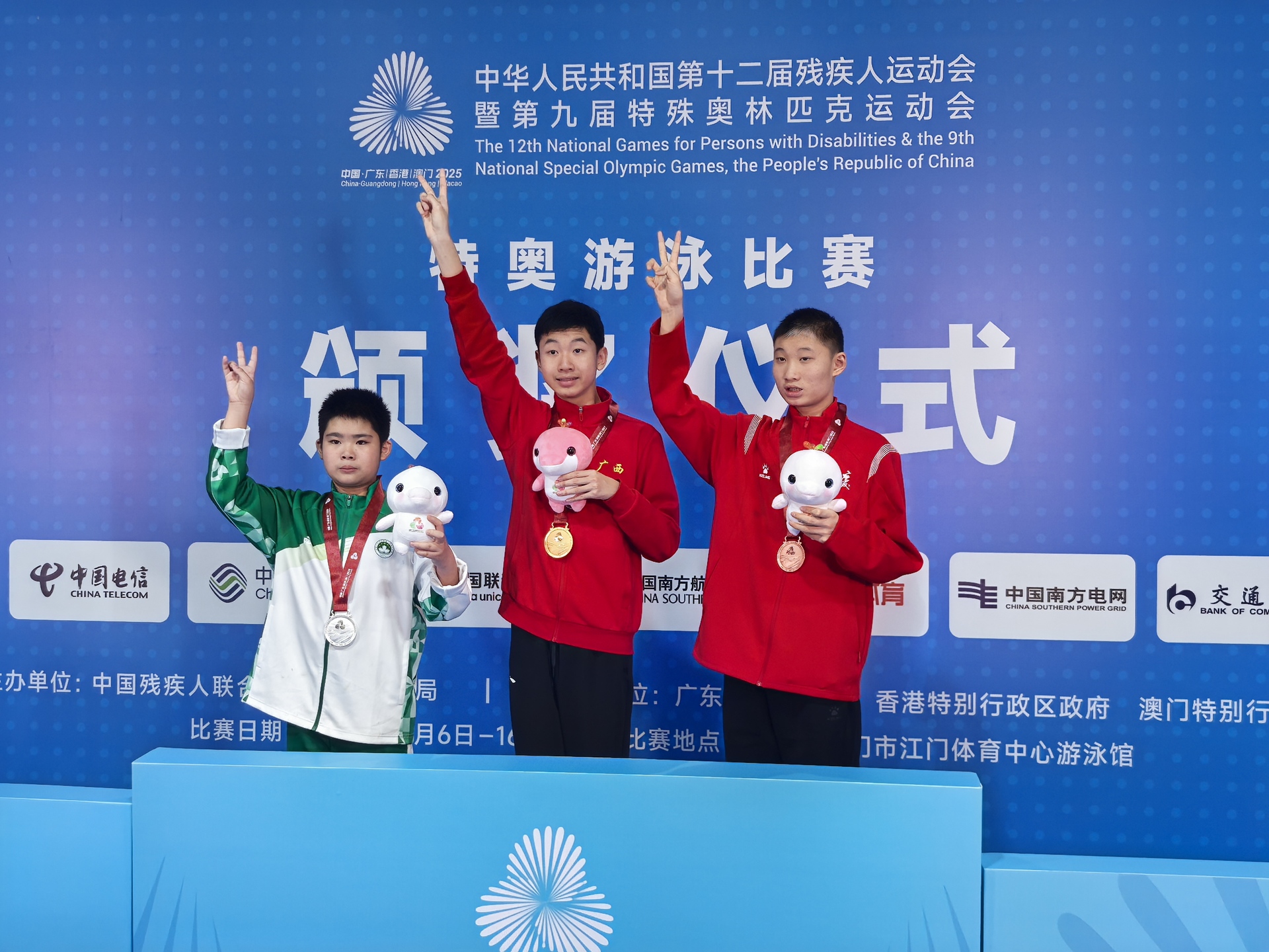 特奥游泳项目今日多点开花。李晟在男子12-15岁50米自由泳中夺金,牟邦宁、龚子玮分获同项目不同组别铜牌。此外,接力项目收获1银1铜。