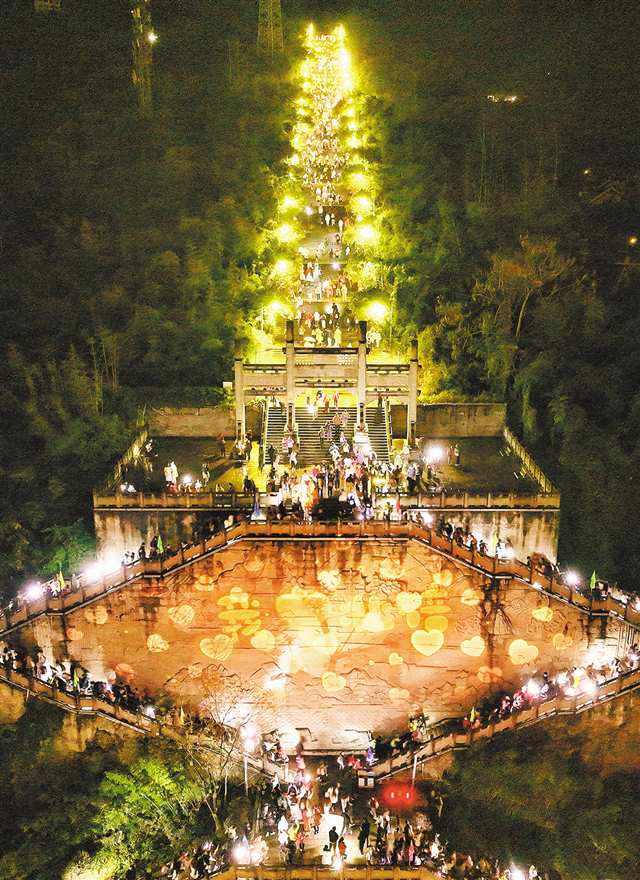 1月1日清晨6时许,北碚缙云山麓,近万名市民游客登顶缙云山,迎接新年第一天。当天,“缙云登高·祈福2026·马上好运”活动启幕,市民和游客头戴夜灯,沿着缙云山健身步道前行,为新年祈福。