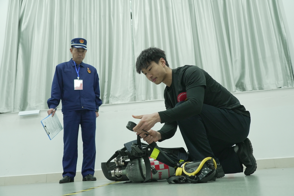 赛场上,正压式空气呼吸器操作、心肺复苏术、急救技术等多组实操竞赛同时展开,全方位检验参赛者的体能储备、实操技能与团队协作水平,还原真实应急场景中的处置流程。