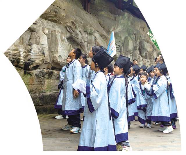 “行走的课堂”大足站,小记者们走进大足石刻