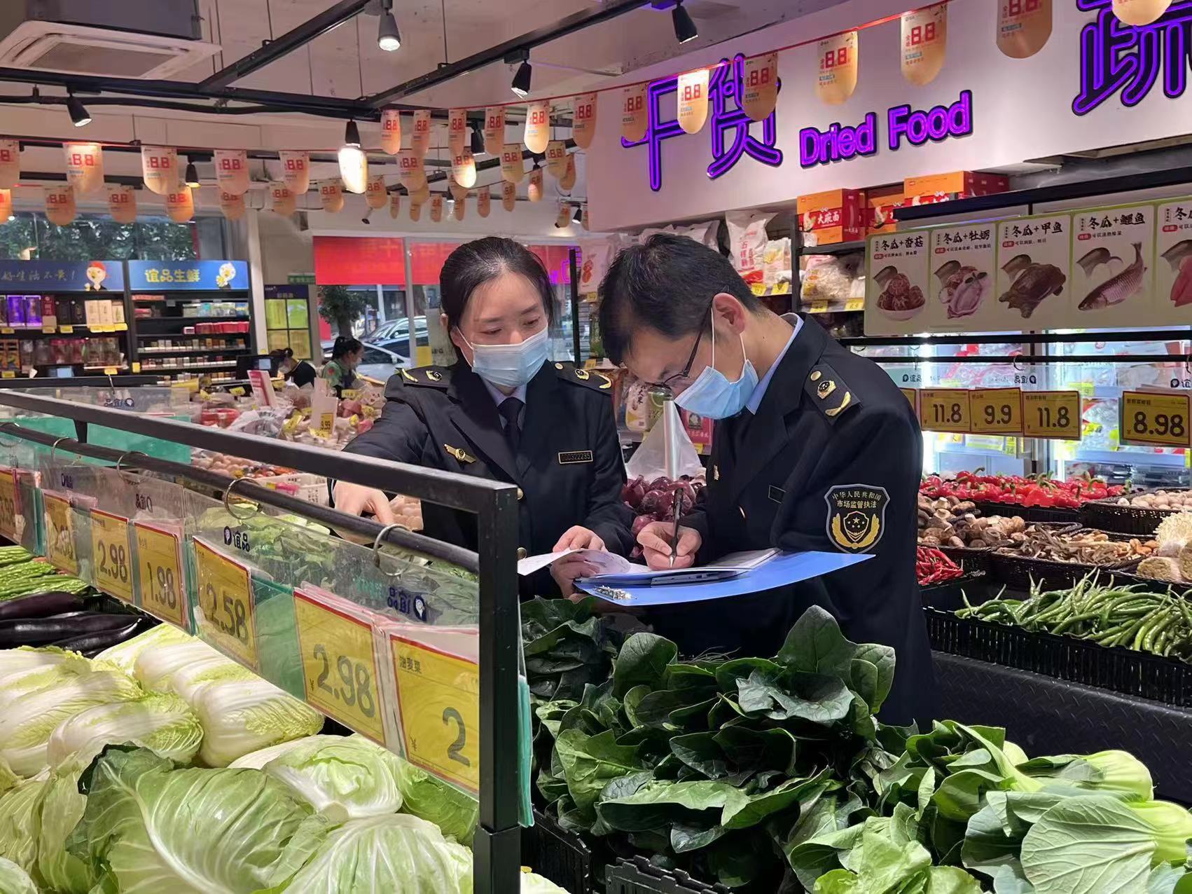 长寿区市场监管局执法人员线下巡查生活物资价格情况。市市场监管局供图